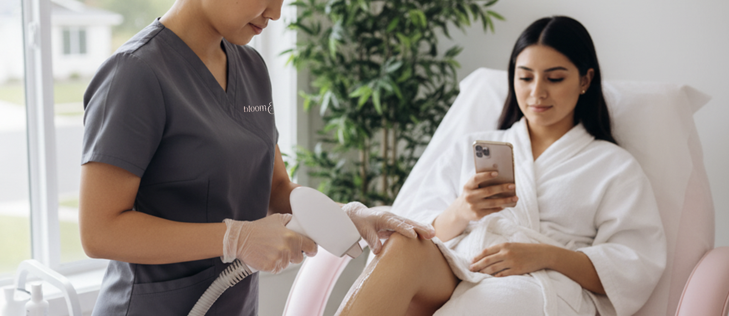 Most clients describe the feeling as warm pulses or light tingling. Our diode system includes built-in cooling to keep the skin comfortable throughout the treatment.